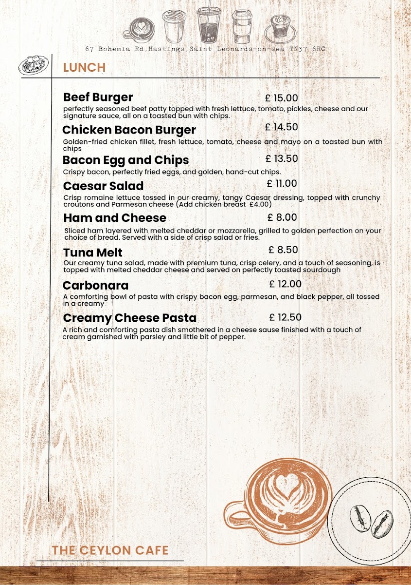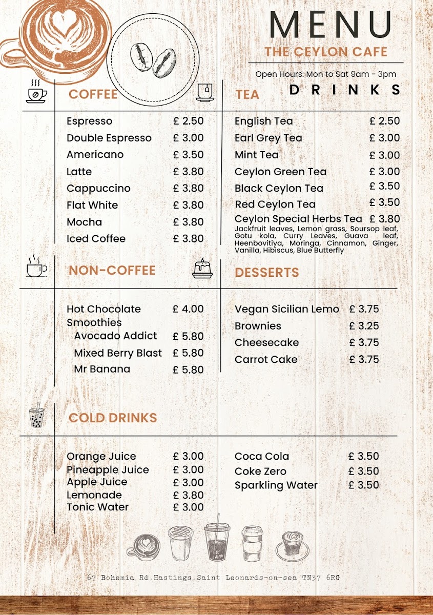 The Ceylon Cafe & Bar Menu